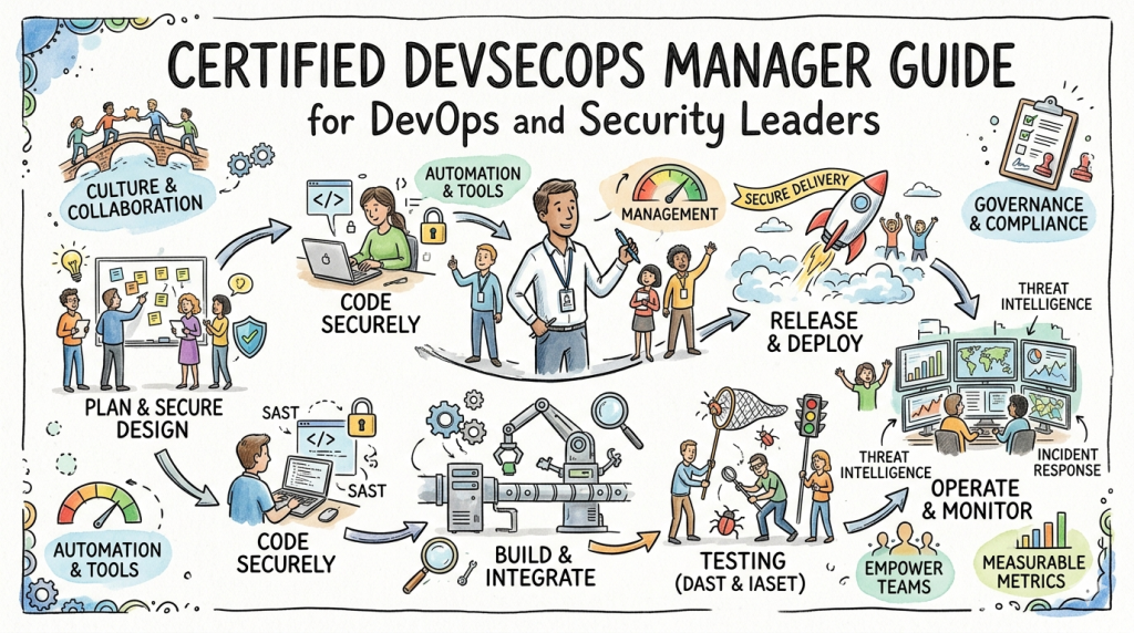 Software delivery has changed dramatically in the last decade. Teams release features multiple times a day, infrastructure is dynamic and cloud-native, and security threats are constant. Many organizations still treat security as a separate gate at the end of the pipeline, and that model is failing under modern speed and complexity. The Certified DevSecOps Manager program exists for professionals who want to lead security as an integrated part of software delivery. This guide explains what the certification is, who it is for, what skills you gain, how to prepare, and how it fits into DevOps, DevSecOps, SRE, AIOps/MLOps, DataOps, and FinOps career paths. It is written for working engineers and managers in India and globally who want a practical roadmap, not just marketing content.