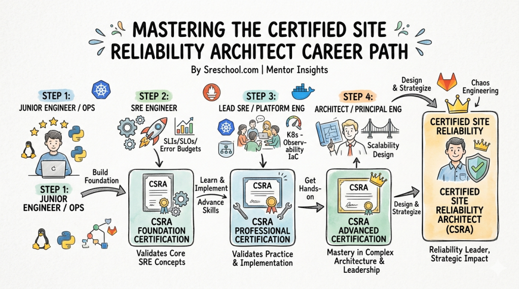 The Certified Site Reliability Architect program is a comprehensive curriculum delivered through the Sreschool platform. It moves beyond simple configuration management to focus on the broader lifecycle of a reliable service, including capacity planning, observability, and disaster recovery. The assessment approach is designed to be practical, often involving case studies or labs that mimic the challenges faced by engineers in a production setting. By completing this program, professionals demonstrate they have a structured understanding of how to maintain high availability in a high-pressure environment.