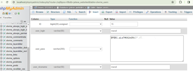 7. Save the changes: After pasting the hashed password into the user_pass field, save your changes by clicking the “Go” button or the equivalent in phpMyAdmin.