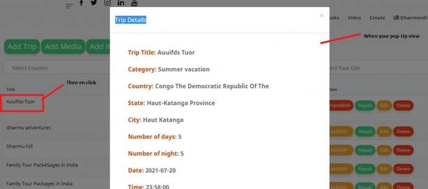 First let’s go to your blade file and you blade file fetchData Function and <tr> add this code when on text Next add use your class detailTrip Read More